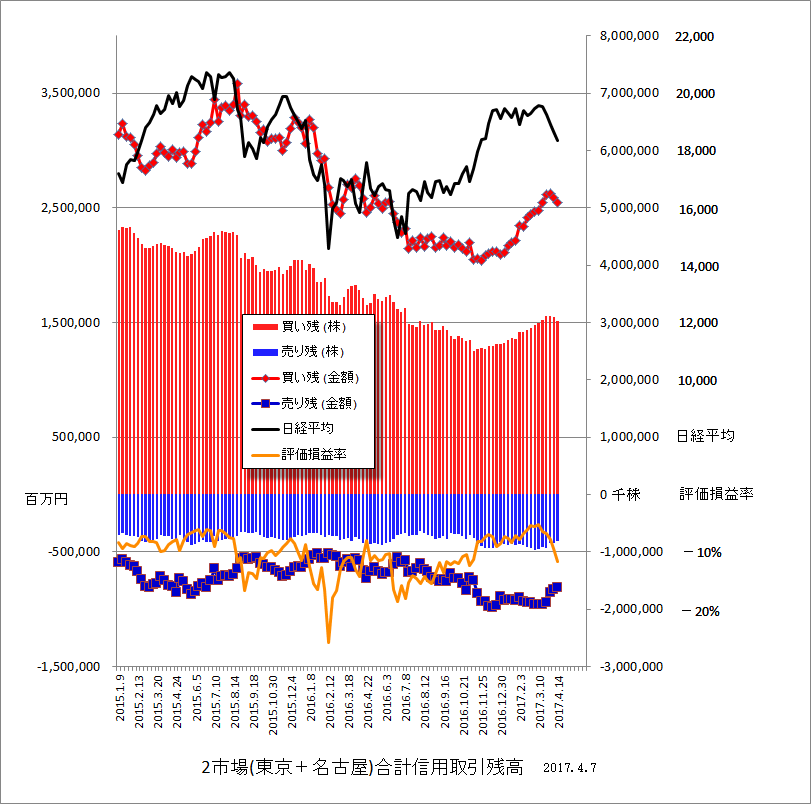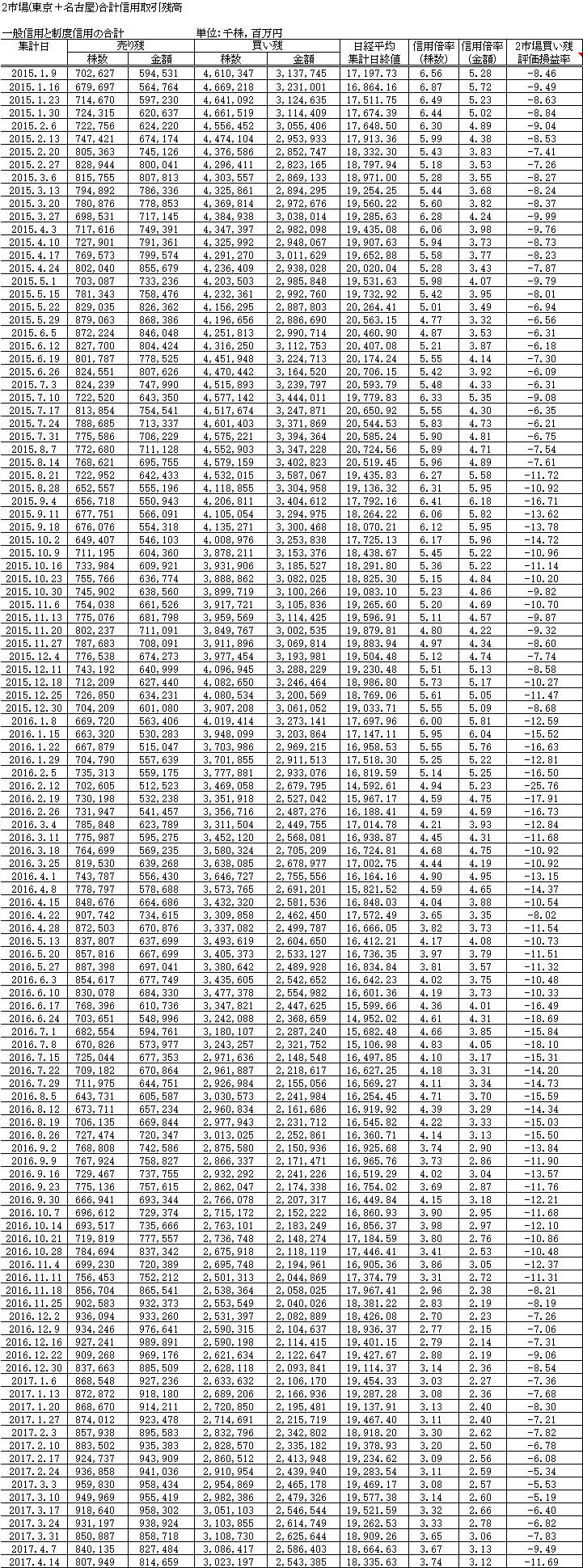 『 信用評価損益率5週連続で悪化』『 マイナス10%を超えると個人の投げ売りが徐々に出やすくなる』