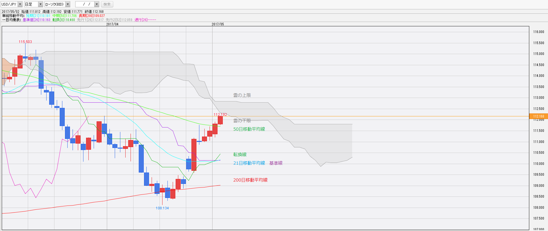 3/21、3/20高値、一目均衡表・雲の上限(112円86銭)