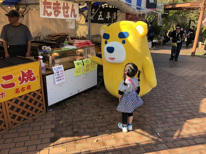 着ぐるみを見ている、小さな女の子供が、かわいいですね。