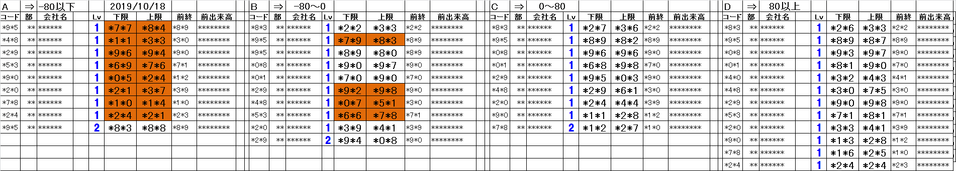 [Aレンジ:-80円以下][Bレンジ:-80円~±0][Cレンジ:±0~+80円以下][Dレンジ:+80円以上]