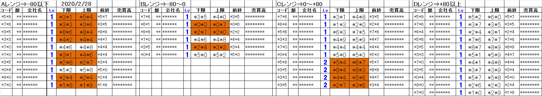 2020/2/28(金曜日)のシステムトレードの仕掛候補一覧はこんな感じです。