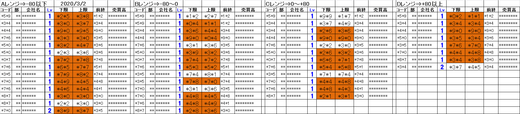 2020/3/2(月曜日)のシステムトレードの仕掛候補一覧はこんな感じです。