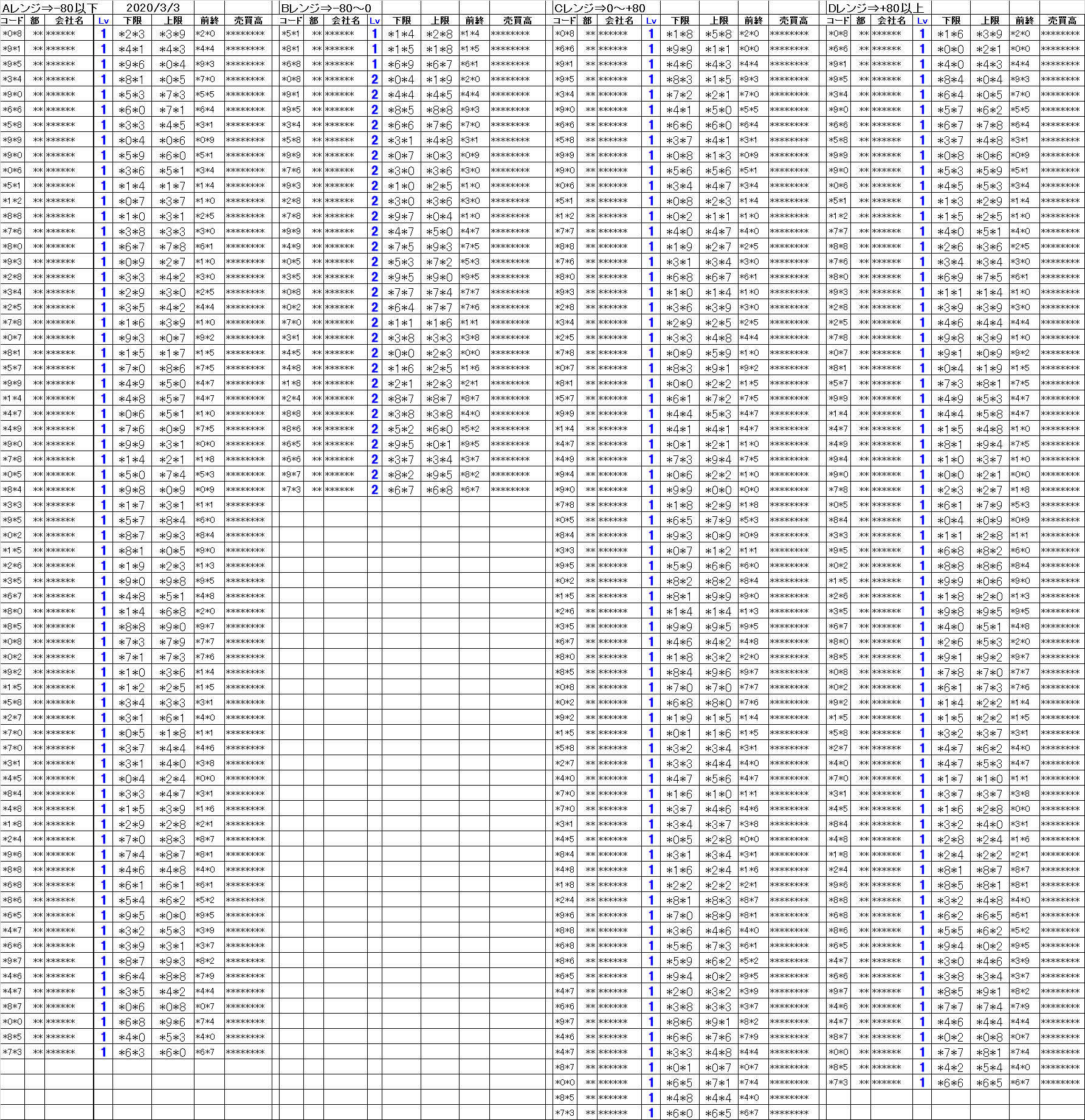 2020/3/3(火曜日)のシステムトレードの仕掛候補一覧はこんな感じです。