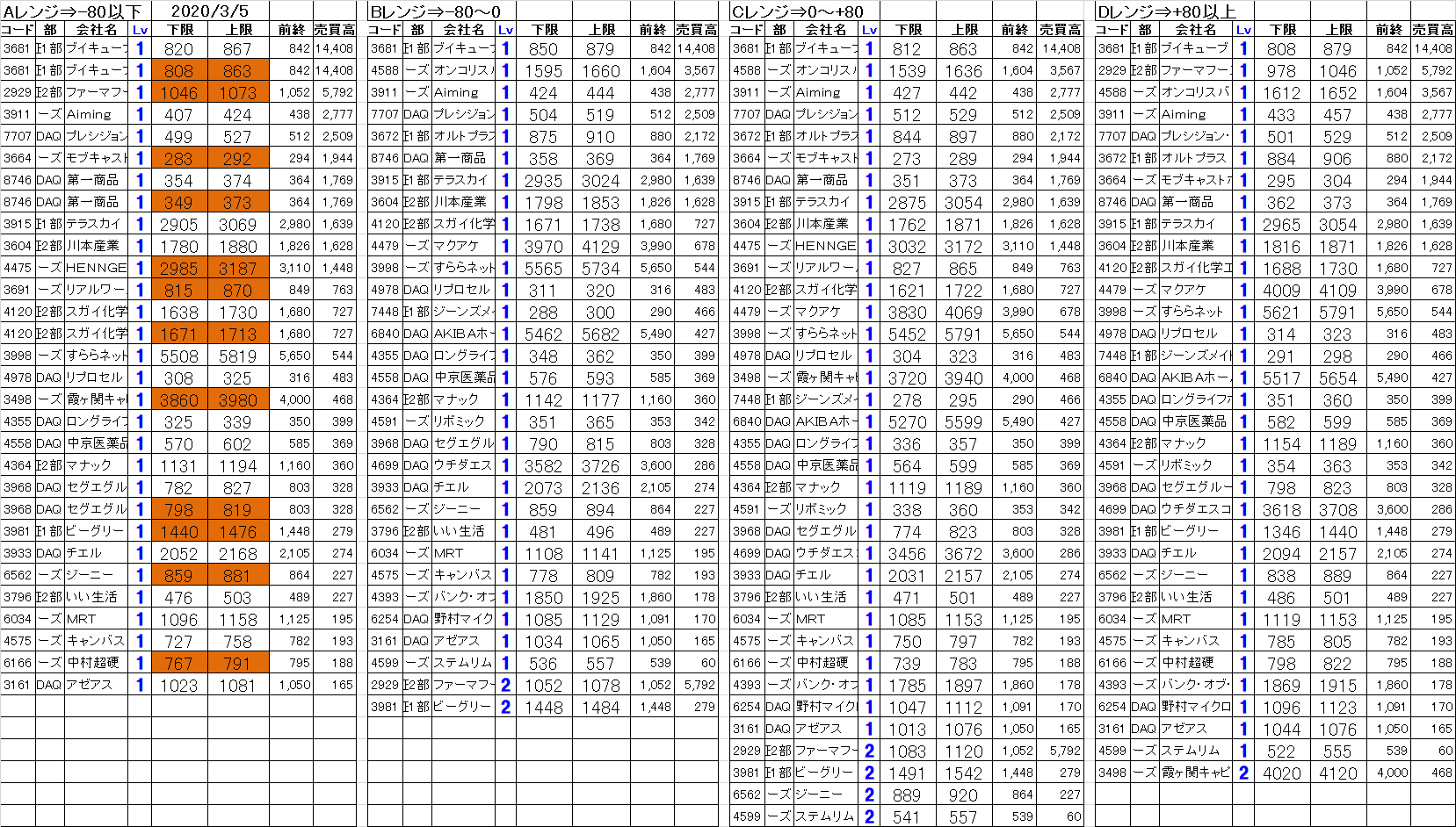 2020/3/5(木曜日) 今日のシステムトレードの仕掛候補一覧です。