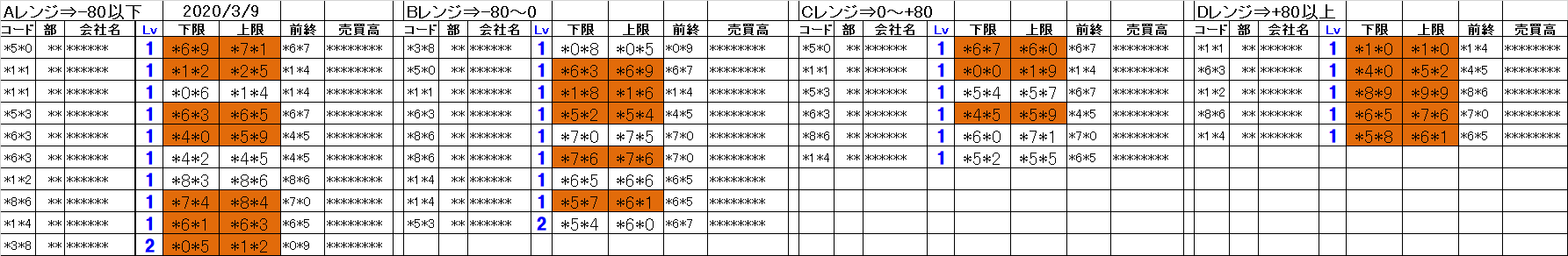 2020/3/9(月曜日)のシステムトレードの仕掛候補一覧はこんな感じです。