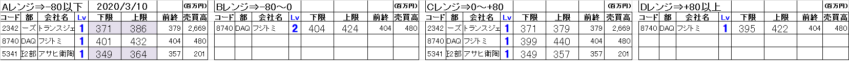 2020/3/10(火曜日) 今日のシステムトレードの仕掛候補一覧です。