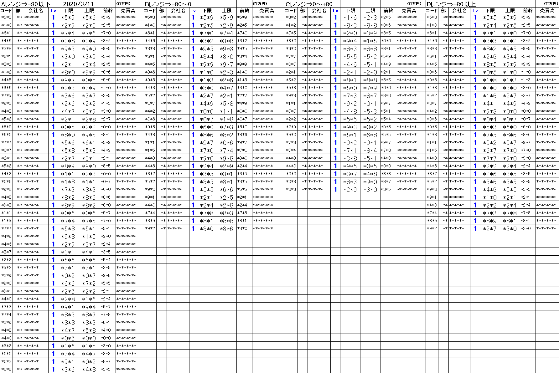 [Aレンジ:-80円以下][Bレンジ:-80円~±0][Cレンジ:±0~+80円][Dレンジ:+80円以上]