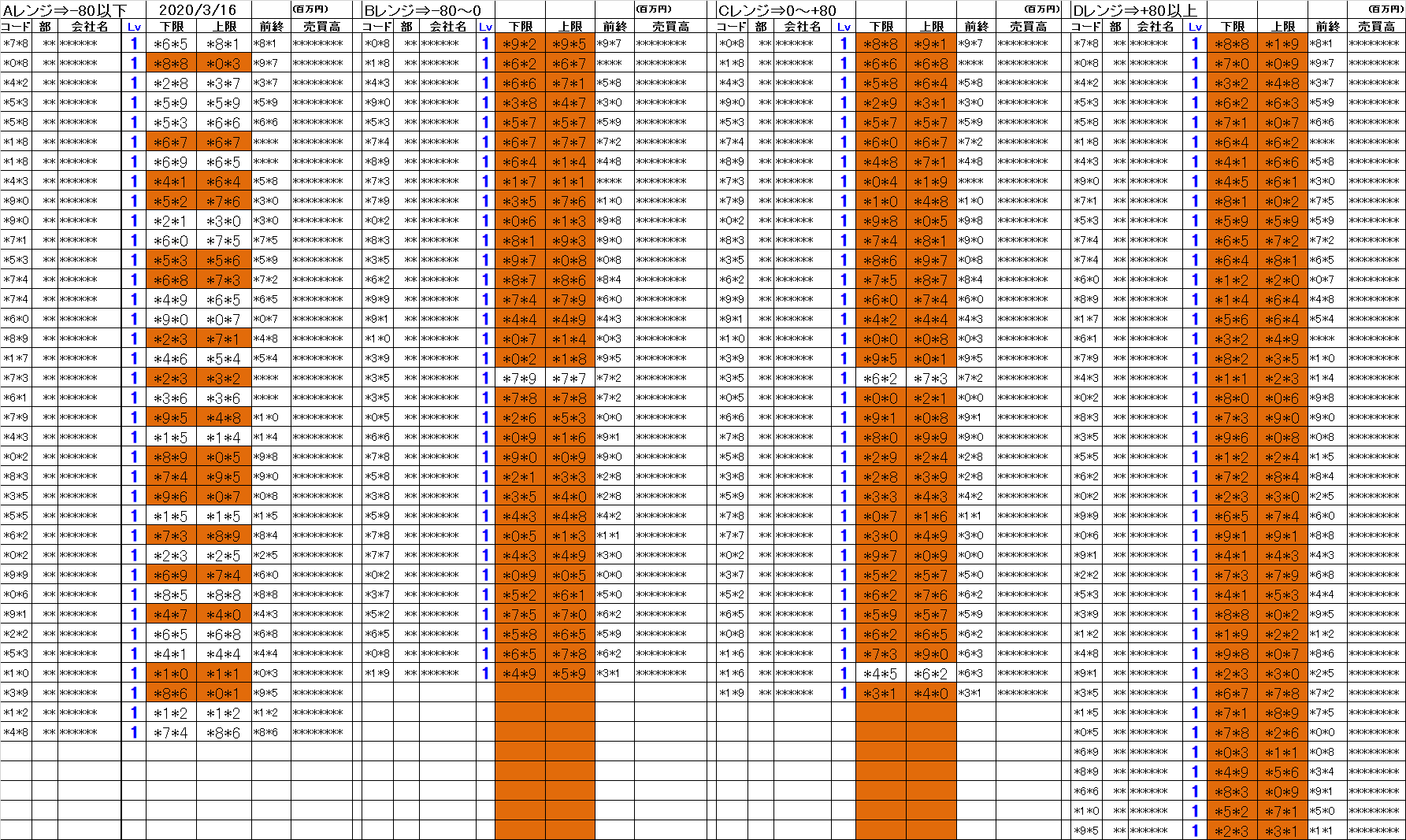 [Aレンジ:-80円以下][Bレンジ:-80円~±0][Cレンジ:±0~+80円][Dレンジ:+80円以上]