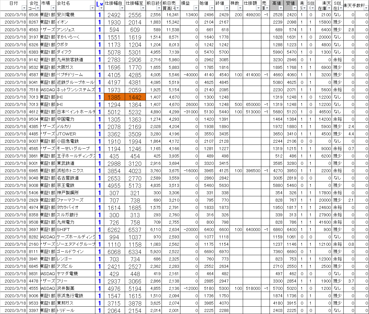 2020/3/18(水曜日)今日の寄り引けシステムトレードの損益を公開します