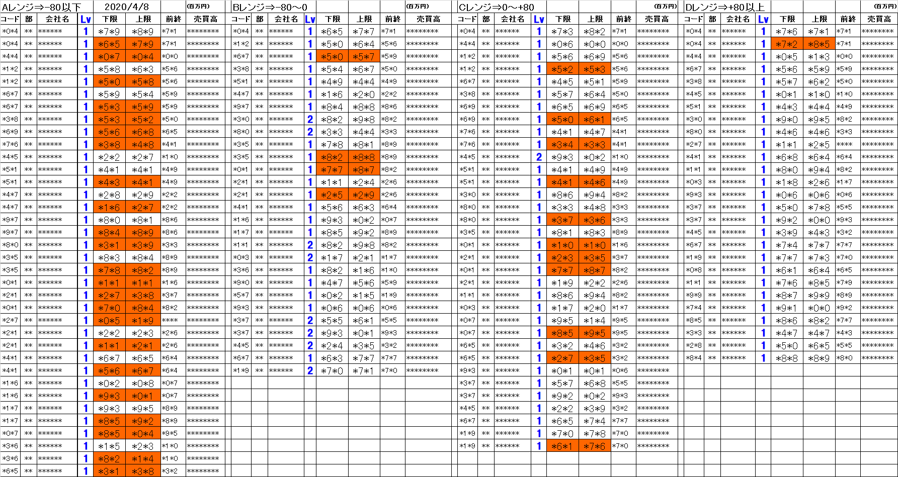 ※背景色がオレンジの銘柄はデータ収集用の【買い仕掛け】候補です