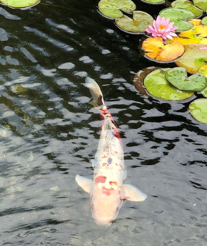 鯉が餌を食べれないので、人影に寄ってくる。