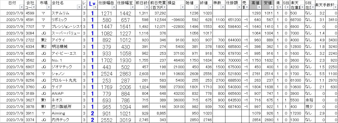 2020/7/9(木曜日)今日の寄り引けシステムトレードの損益を公開します