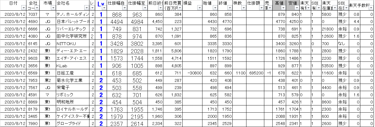 2020/8/12(水曜日)今日の寄り引けシステムトレードの損益を公開します