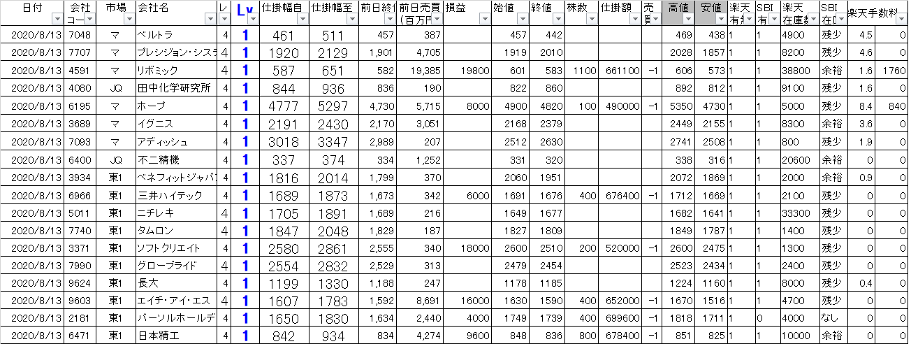 2020/8/13(木曜日)今日の寄り引けシステムトレードの損益を公開します