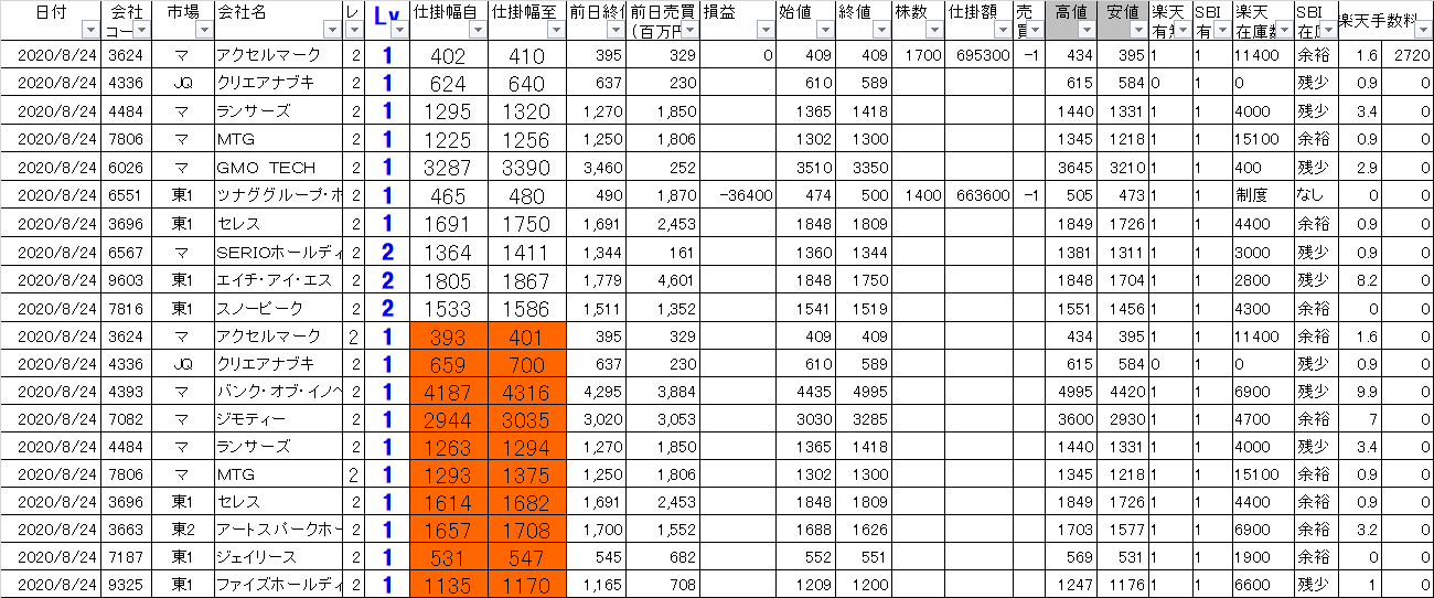 2020/8/24(月曜日)今日の寄り引けシステムトレードの損益を公開します