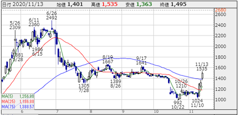 まあ前と比べて株価は高い位置ではありますが、1000円近辺で推移してから材料で行って来いじゃなく需給こなしての上昇ですので、これは下手すると暴騰の初動な感じありえるんですよね…前も増資後に株価3倍、増資後に5倍って感じになっていますので、今1500円の位置から5000円という可能性は否定できないです。