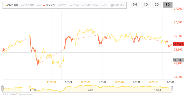 日経225先物チャートのリアルが、インベスト証券でありますが、これでは、弱気サインが灯っていました。11月30日にーー