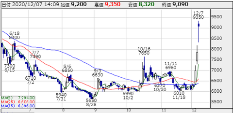 最近のEV関連もですが、時価総額の小さいものが物色されると暴騰となっているわけですが、時価総額の小さい水素製造装置関連の中では!!