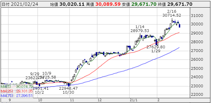 昨日は祝日に仮想通貨が大暴落を見せましたが、祝日明けの本日の相場は日経平均株価は3万円を再び割れ、新興市場もジャスダック、マザーズ共に下落と全体相場が何か調整の感じが漂ってきていますね~(悲)