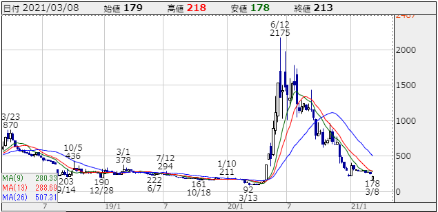バイオ関連の中でも新型コロナウイルスワクチンの期待で100円台から2000円台に上昇と大暴騰となったテラですが、もう遂にギブアップとなる可能性が高い様ので、この銘柄は本当に注意しておいた方がいいですよ!