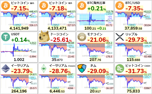 ビットコインやイーサリアムなど主流通過だけでなく、リップル、リスク、LOSTとすべての通貨が30~50%安ですからね!