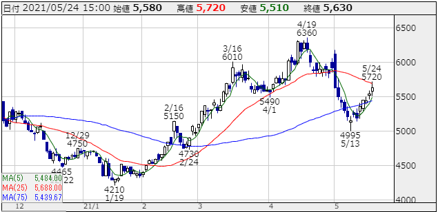 ワクチン接種が進んでの経済活動復活の期待はありますが、政府が緊急事態宣言の期間を延長もしている事から睨み合いという感じですね。