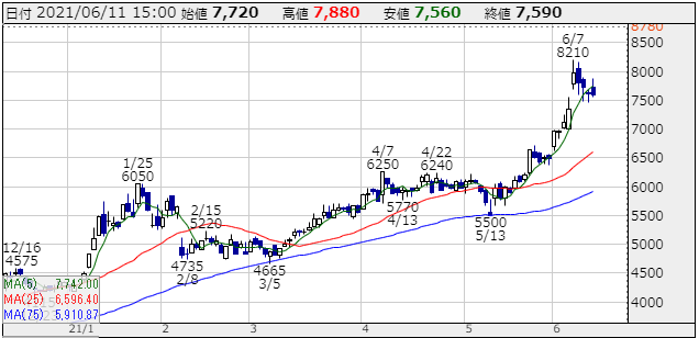 チャートは高い位置にありますが、PER16倍、PBR1.53倍と割高というわけではありませんし、TSMCが開発拠点を日本国内に設けて同社が参加が確定となれば、株価はもう一段高の期待がもてると言えますよ!