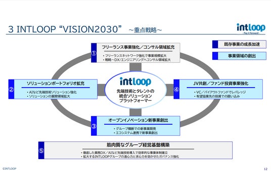 コンサルティング事業、フリーランスのエンジニアやコンサルタント向けプロジェクト案件紹介事業などを行うINTLOOP株式会社(よみ:イントループ 本社:東京都港区 代表取締役:林 博文、証券コード:9556、以下当社)は、2024年9月13日に2025年7月期を初年度とし、2030年7月期を最終年度とする中長期経営計画「INTLOOP“VISION2030”」を発表しました。