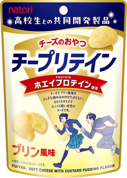 当社独自の特許製法のチーズ製品を高校生ならではの発想でアレンジしました。「チーズ」と「プリン風味」のありそうでなかった意外な組み合わせが驚きと楽しさを演出します。パッケージデザインにも躍動感ある高校生のイラストを載せています。
