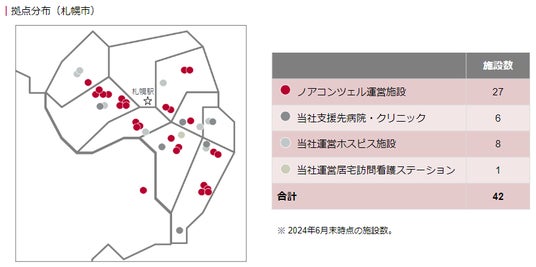 「ReHOPE」、同株式会社ネイチャーが運営するホスピス型住宅「ナーシングホームなつれ」同ソフィアメディ株式会社が運営する「ソフィアメディ訪問看護ステーション」等、札幌市におけるCUCグループの施設数は42カ所となります。