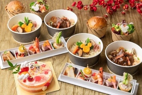 ディズニーアンバサダーホテルの「エンパイア・グリル」(カリフォルニア料理レストラン)では、選べる前菜とお肉料理、和の要素として、きなこと抹茶を使用したデザートをお召し上がりいただける「イヤーエンド&ニューイヤー エンパイア・グリル・ディナー」を提供するほか、客室でもゆったりと迎春を楽しめるテイクアウトメニュー「イヤーエンド&ニューイヤー ディナーセット」などをご用意します。
