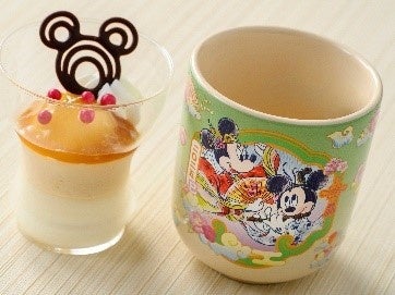 和服姿のミッキーマウスとミニーマウスが描かれた湯呑み形のスーベニアカップ付きデザートを、12月26日(木)より東京ディズニーランド「スウィートハート・カフェ」、東京ディズニーシー「ザンビーニ・ブラザーズ・リストランテ」で販売します。優しい甘さのミルクゼリーときなこのムースに白玉とみたらしの餡が添えられた、和を感じていただけるデザートです。また、2025年1月1日(水)から1月5日(日)の期間限定で、雑煮椀を販売します。東京ディズニーランドの「れすとらん北齋」では、柚子の爽やかな香りが漂うすまし仕立ての雑煮椀をご用意します。東京ディズニーシーの「レストラン櫻」では、鴨のつみれが入った雑煮椀をお楽しみいただけます。桜を模した麩と焼き餅は別添えで提供され、見た目にも華やかな一品です。どちらのお店でもお食事膳の味噌汁を雑煮椀に変更することができます。
