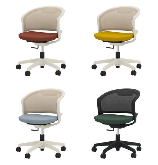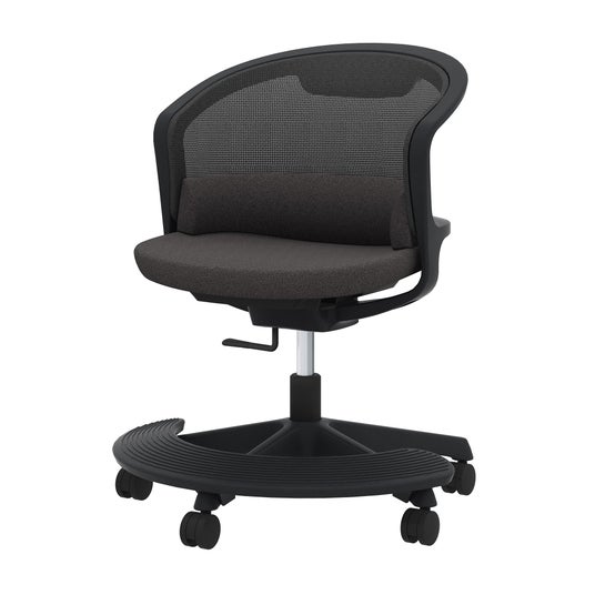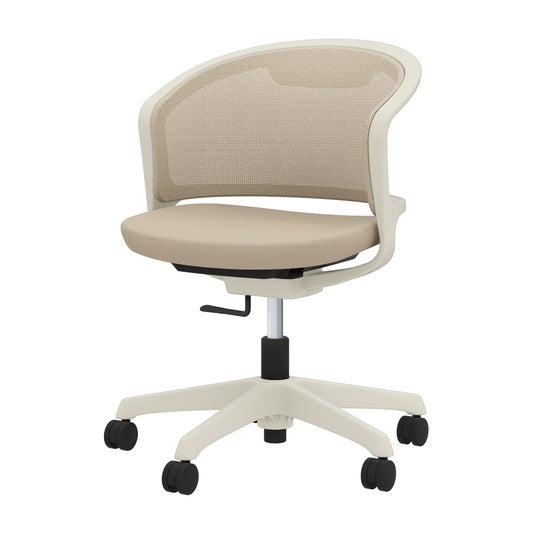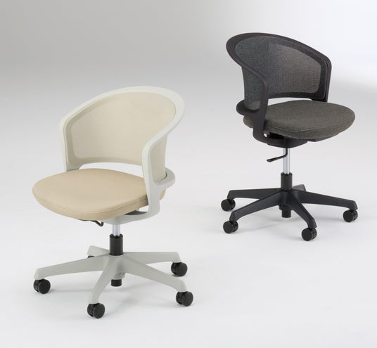 「mirumio」では、チェアの座面中心に深く座れるよう、背もたれ