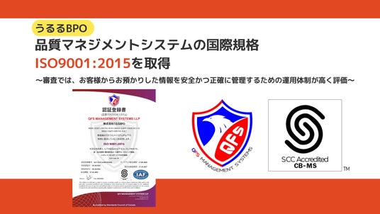うるるBPO、更なる顧客満足と提供サービスの品質向上を目的に品質マネジメントシステムに関する国際規格【ISO9001:2015】を取得
