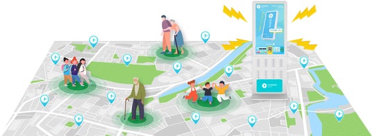 「ChargeSPOT」のバッテリースタンドに、見守りスポットとして機能する専用アプリをインストールすることで、ottaの見守りサービス利用者の位置情報を記録します。全国に約4万5000台設置された「ChargeSPOT」のうち、まずは約3万台で専用アプリのインストールを実施。見守りスポットとしての機能を実装します。これによりottaの見守りスポットは約8万箇所となり、サービス利用者に対して精度の高い位置情報をより広範囲に提供することが可能となります。