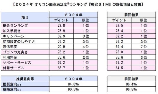 「2024年 オリコン顧客満足度(R)調査」の『格安SIM』ランキングは、MVNOおよびキャリアサブブランドの17社について、実際に格安SIMを契約し、かつ現在メインのモバイル通信回線として利用されている方を対象とした調査の結果に基づくものです。
