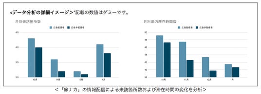 配信終了後は位置情報ビッグデータを用いて、情報配信による来訪箇所数や滞在時間の変化を分析する予定です。また、どの地域からの来訪をより促進できたかなどをデータで解析することで観光消費や地域活性化に向けた示唆を導くなど、「もうひと観光・もうひと体験」を生み出し続ける仕組みづくりに貢献いたします。