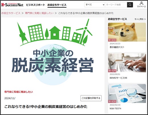 具体的には、中小企業向け会員制サービス「サクセスネット※5」( https://sj-successnet.kalep.net/posts/50159 )を通して、CO2排出量可視化支援サービス、GHG※6排出量削減計画策定支援、省エネ診断前の無料相談などを提供します。