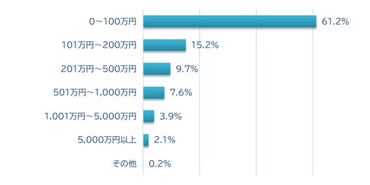 (3)ひと月に仕入れをする金額は0~100万円が61.2%で最多。