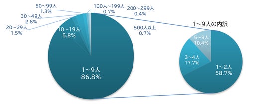 (2)今回の調査では従業員数が1~2人の店舗が半数以上(58.7%)を占める。