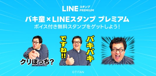 さらに、お笑いコンビ「春とヒコーキ」の「バキ童」ことぐんぴぃさんのボイス付きスタンプ『バキ童×LINEスタンプ プレミアム』を、LINEスタンプ プレミアム会員限定で無料配信します。