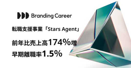 株式会社TWOSTONE&Sonsの100%子会社である株式会社Branding Career(所在地:東京都渋谷区、代表取締役CEO:佐地良太、以下 Branding Career)は、運営する転職支援事業「Stars Agent」において、2024年8月期の「売上高前年比174%増」、2024年8月末時点で支援した求職者の転職後の動向を調査したところ「入社後早期離職率1.5%」(※1)という成果を挙げたことをお知らせいたします。
