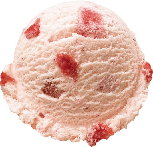 苺果肉を入れた こだわりの紅茶アイスクリームと優しいミルクのアイスクリームに、甘酸っぱいストロベリーリボンを加えたリッチなおいしさ