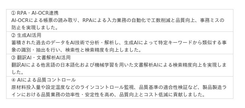 引き続き、当社がこれまで培ってきた「AIソリューション」の実績を活かし、お客様のニーズに応じた最適なソリューションを提供し、DX化・業務効率化・省力化への取組みに貢献してまいります。
