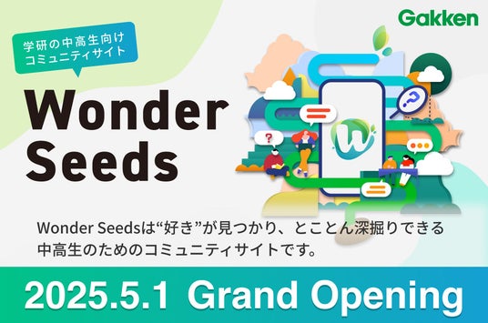 株式会社学研ホールディングス(東京・品川/代表取締役社長:宮原博昭)のグループ会社の株式会社学研教育ホールディングス(東京・品川/代表取締役社長:勝野哲也)は、中高生を対象とした新しいオンラインコミュニティサイト 「Wonder Seeds(ワンダーシーズ)」 を2025年5月1日に正式オープンいたします。中高生なら誰でも無料で利用できます。