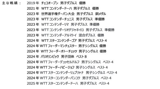 この度、琉球アスティーダに入団することになり、大変嬉しく、光栄に思います。琉球アスティーダは素晴らしいチームであり、熱狂的なファンの方々がいると聞いています。沖縄の地でプレーできることを今からとても楽しみにしています。Tリーグはレベルの高いリーグであり、そこで自分の力を試せることにワクワクしています。私の持ち味であるアグレッシブなプレーでチームの勝利に貢献し、プレーオフ進出、そして王座奪還という目標を達成するために、全力を尽くします。