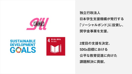 自社開発の業務管理システムで、企業の経営力や働く人の士気向上を支援する株式会社アイル(本社:大阪市北区・東京都港区、代表取締役社長:岩本哲夫、東証プライム:3854)は、独立行政法人日本学生支援機構(以下、同機構)が発行するソーシャルボンド(第79回日本学生支援債券、以下、本債券)への投資を決定しました。第73回に続き2度目となります。
