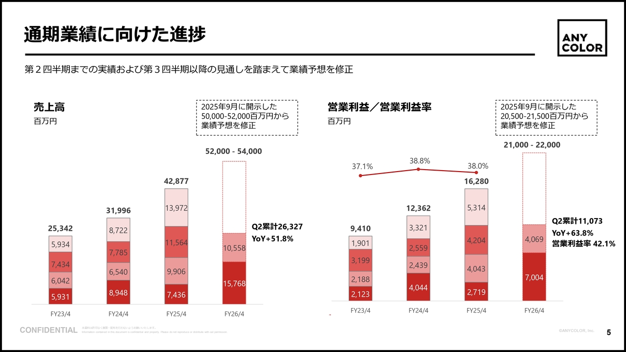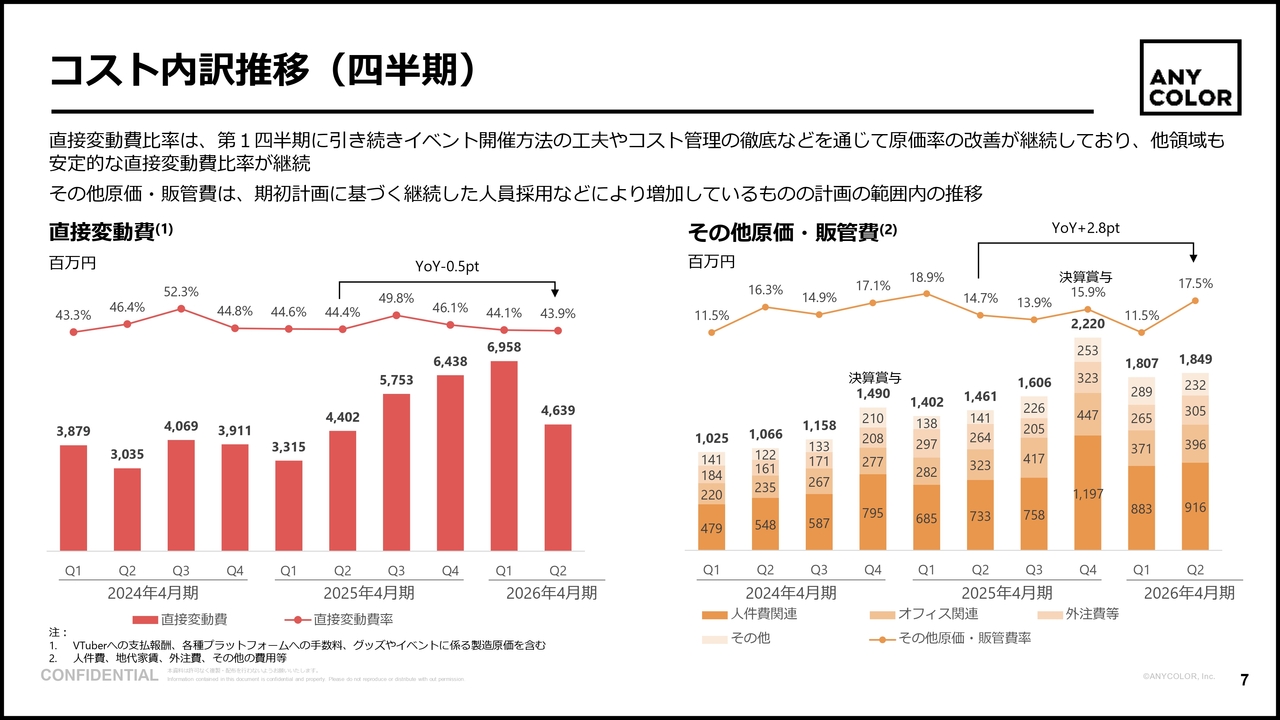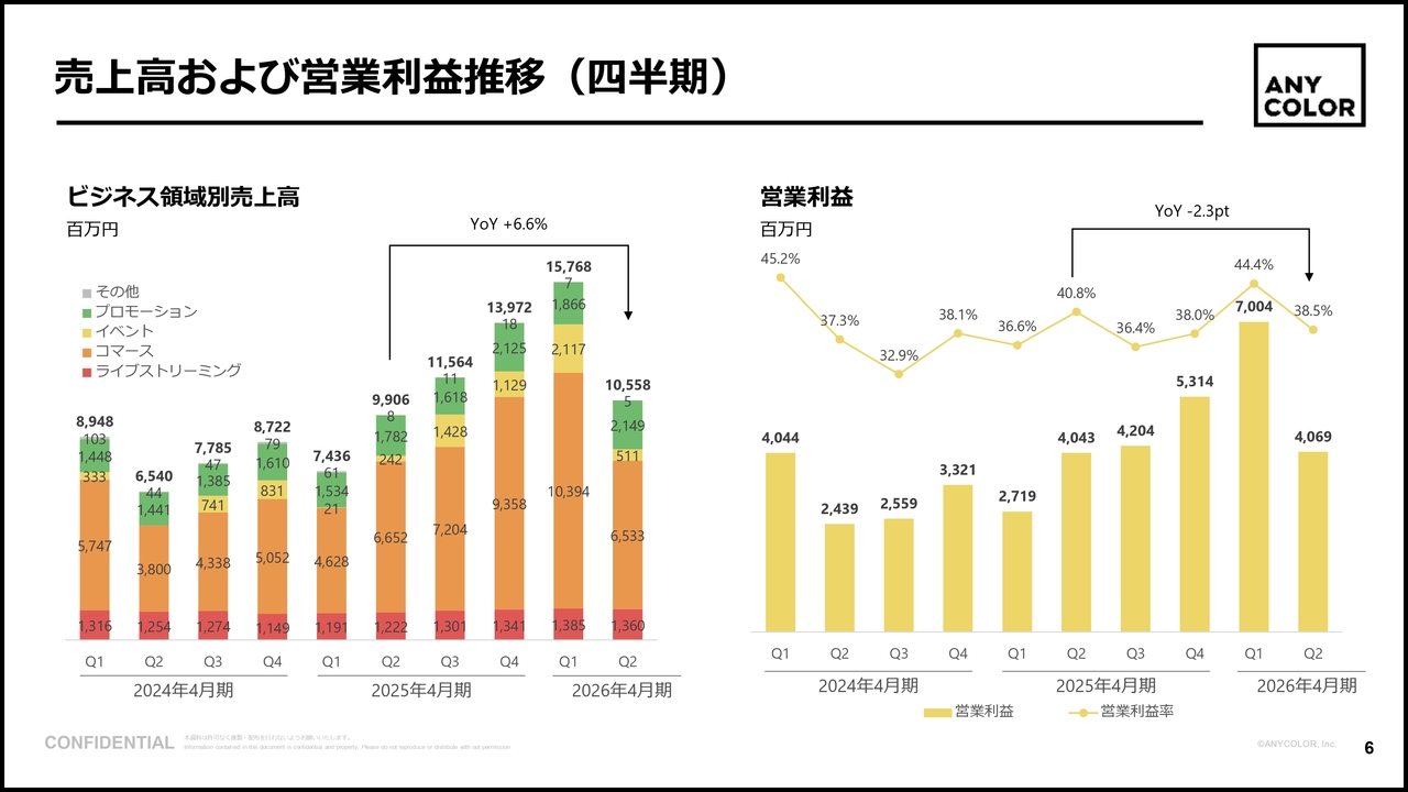 田角陸氏(以下、田角):みなさま、本日はお集まりいただき誠にありがとうございます。ANYCOLOR株式会社代表取締役CEOの田角です。それでは、2026年4月期第2四半期の業績について、取締役CFOの釣井よりご報告します。