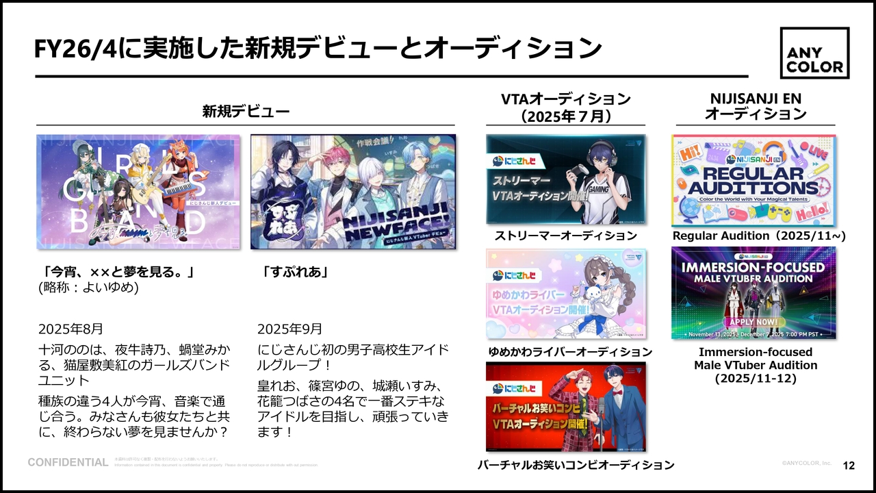 田角:この四半期についてはタイミングが重なったこともあり、女性4人のガールズバンドと男子高校生4人の「すぷれあ」というグループがデビューしました。その結果、この四半期では8名がデビューしたことになります。
