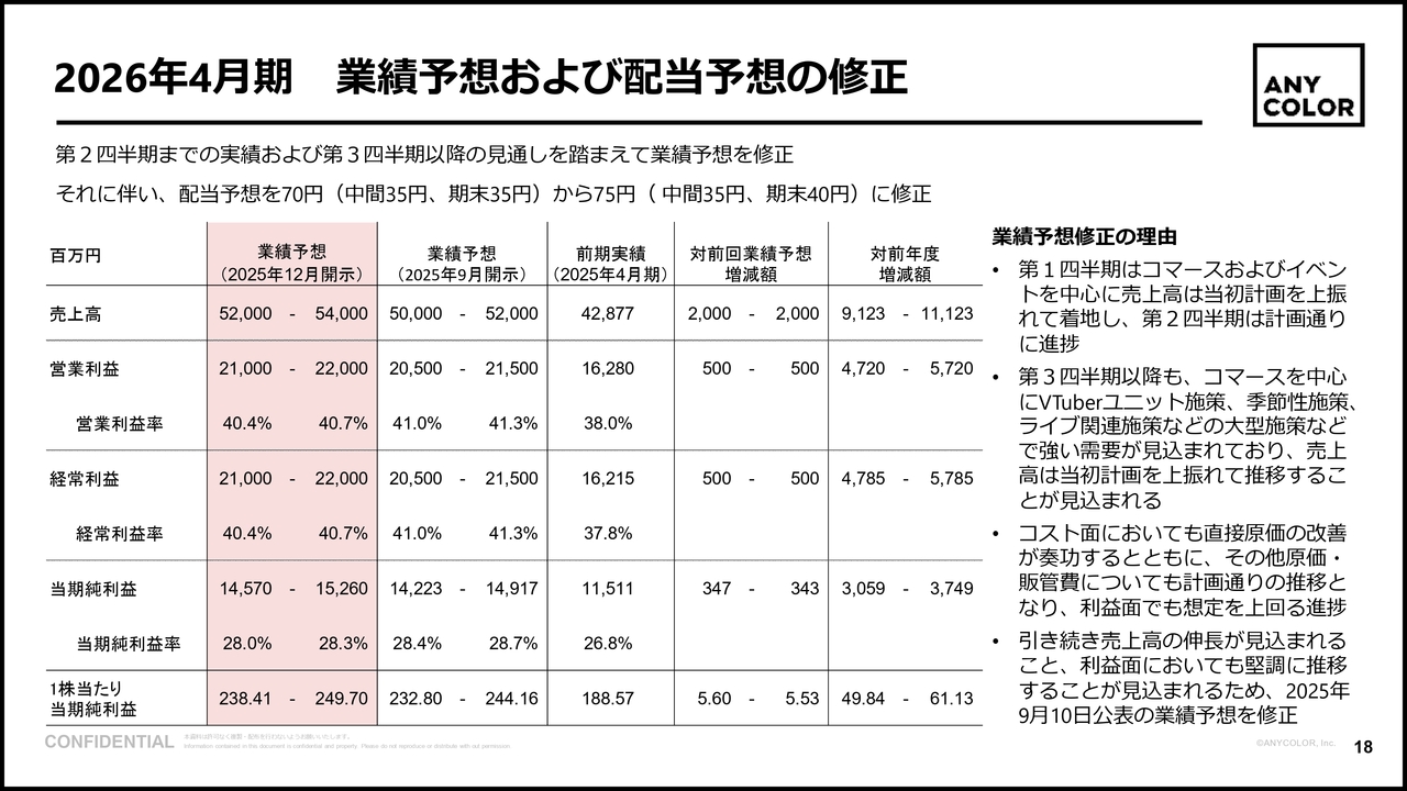 ANYCOLOR、2Qまでの実績と3Q以降の需要見込みに基づき通期業績予想を上方修正 配当予想も75円へ増配予定